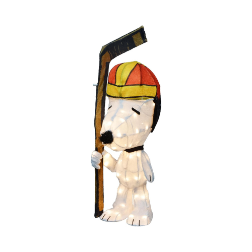 Hockey Snoopy is a charming lighted décor piece featuring Snoopy geared up for hockey fun. Standing at 28 inches tall, this delightful figure adds a playful, cozy glow to Christmas displays and sports-themed events, perfect for both indoor and outdoor décor.