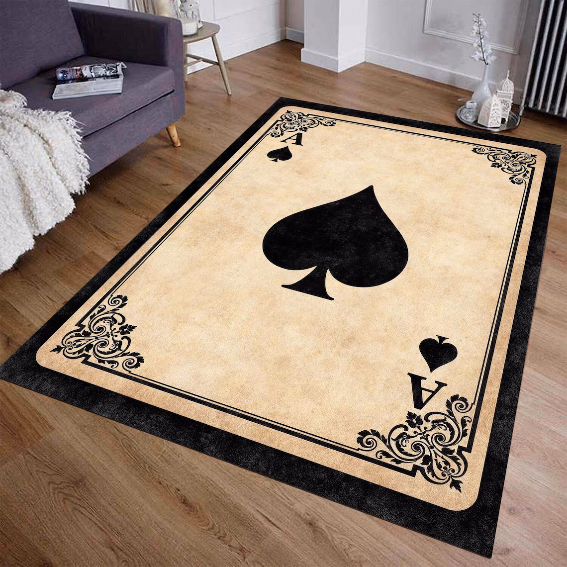 The colors are sharp, the details stand out, and the oversized card look adds personality to your layout without feeling over the top. Whether you’re styling a gaming area, building out a themed entrance, or setting up a creative backdrop for an event scene, this rug helps everything feel more cohesive and intentional. It’s a solid piece for event planners who want something memorable, practical, and easy to incorporate into different themed setups.
